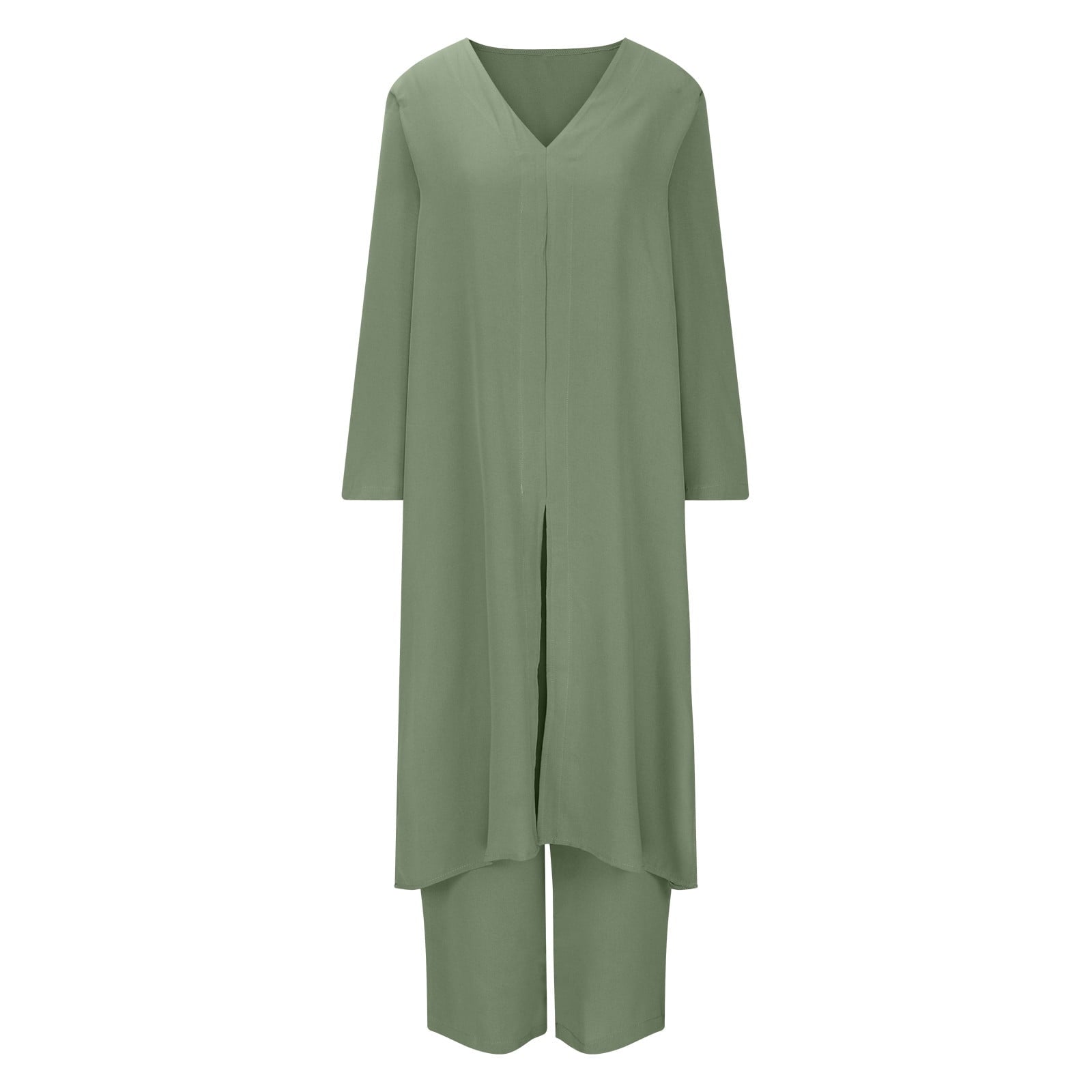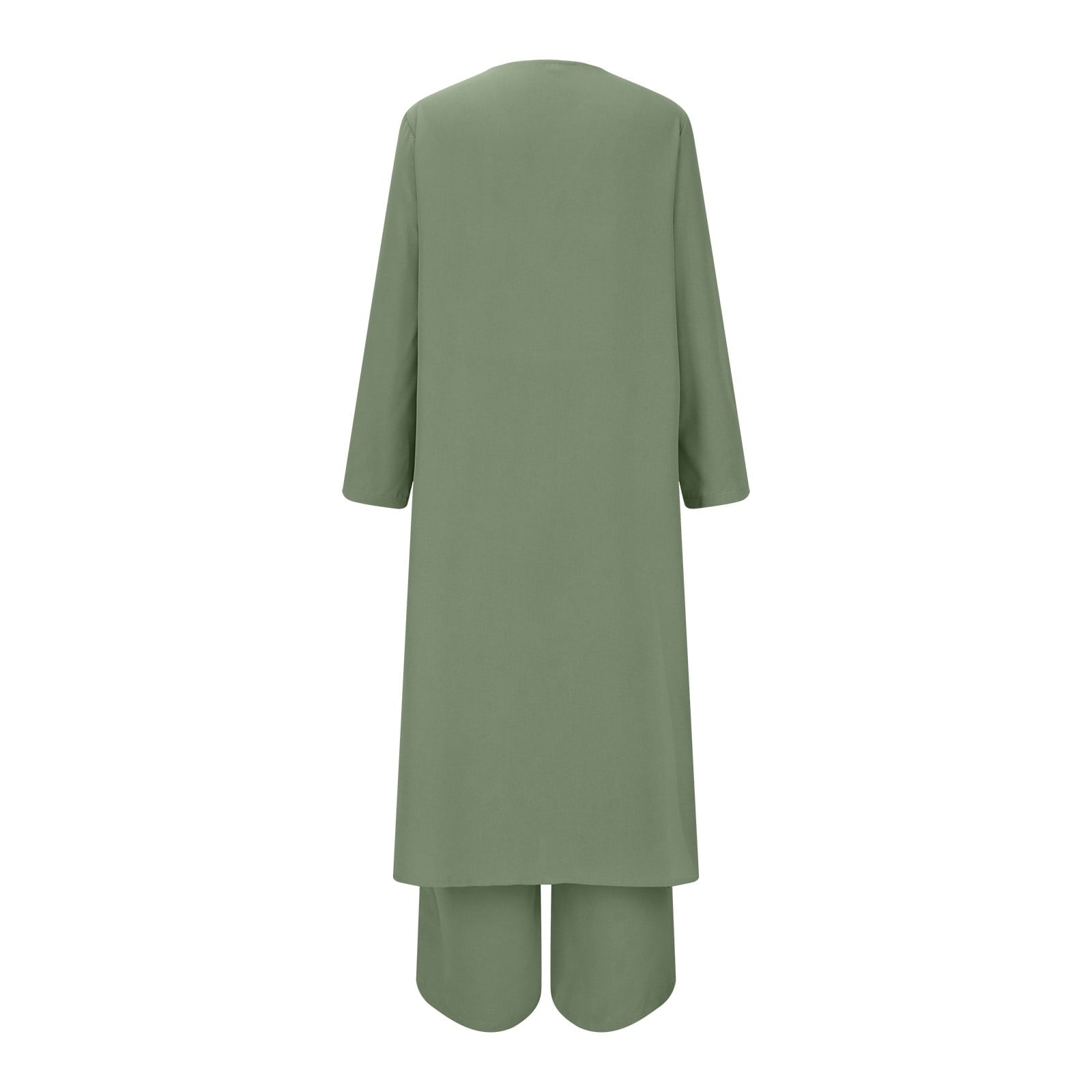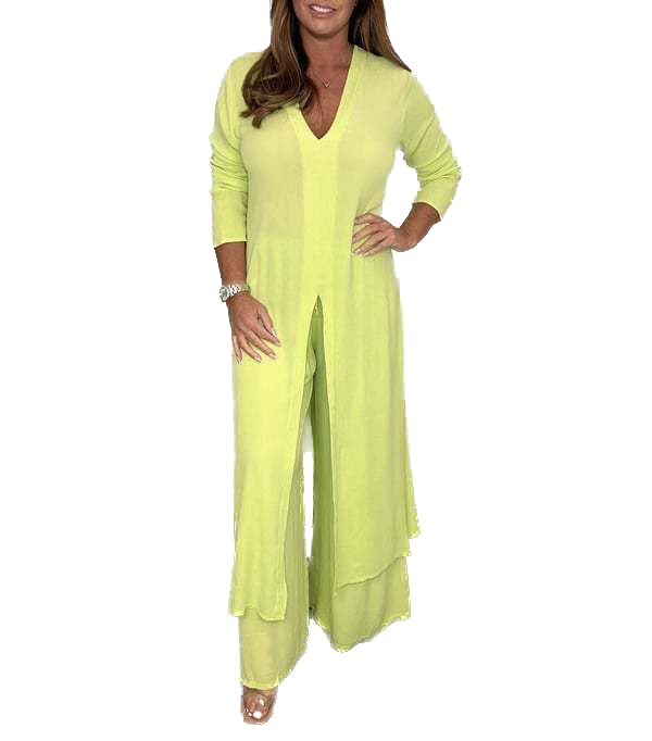 Diseñado para el día a día asícomo para ocasiones formales, esligero y cómodo, permitiéndote usarlo en multitud de ocasiones. Gracias a sutejido de algodón y poliéster de primera calidad,se adapta a la perfección a cualquier figura y su cuidado es sencillo, por lo queseguirácomo nuevo después de cada lavado. Su top largo con escote de pico junto con su pantalón ancho, lo convierten en una opción elegante y fácil de llevar, ayudándote a mantener tu estilo propio.Lo mejor de este conjunto es su versatilidad, ya que puedes usar el top largo y los pantalones anchos juntos o combinarlos por separado con otros prendas.