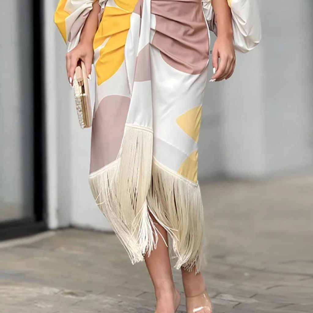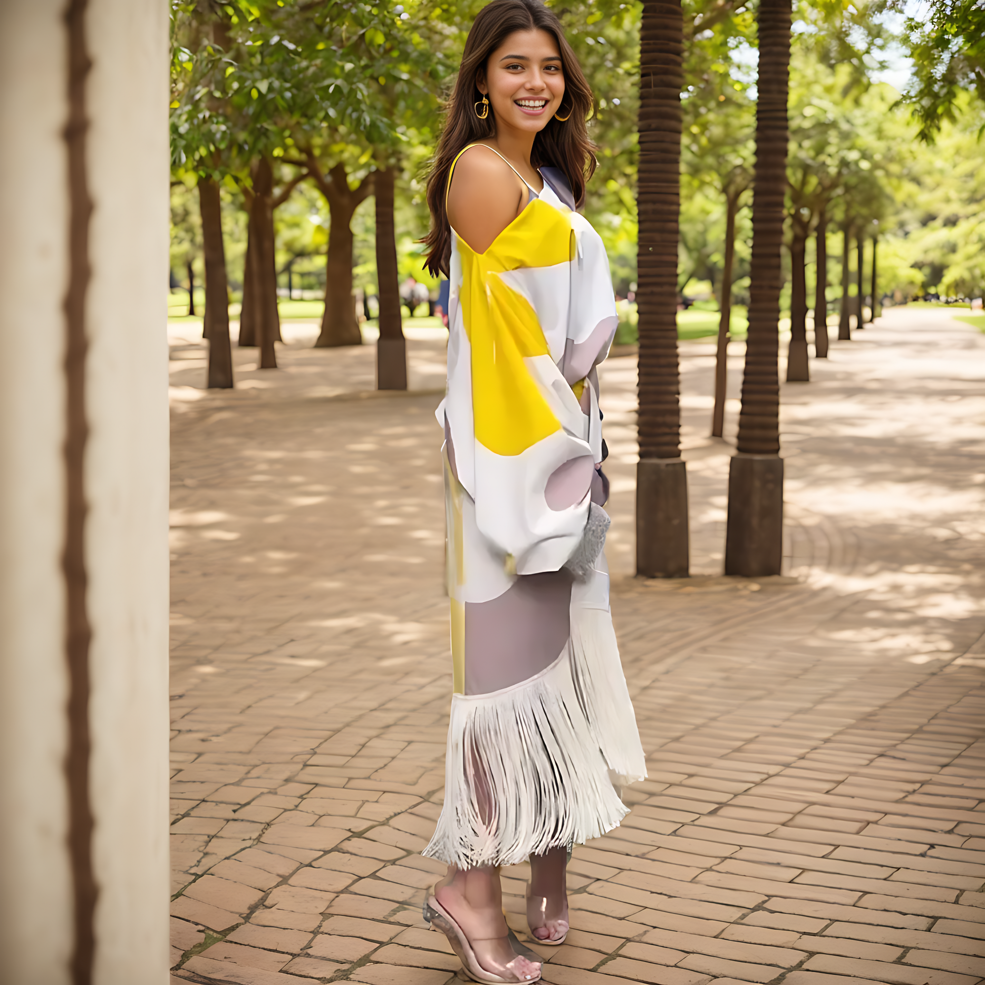 Gracias a su tejido de algodón y poliéster, es suave al tacto y resistente; además de ser fresco, lo que lo hace perfecto para usarlo en las próxima temporada. Su corte holgado y su diseño se adaptan a la perfección a ti, por lo que garantiza un ajuste excepcional a cualquier figura. Sus mangas de murciélago abullonadas junto con su falda de flecos y su lazada al frente le brindan un toque moderno y a la vez de elegancia. Triunfarás allá donde vayas.